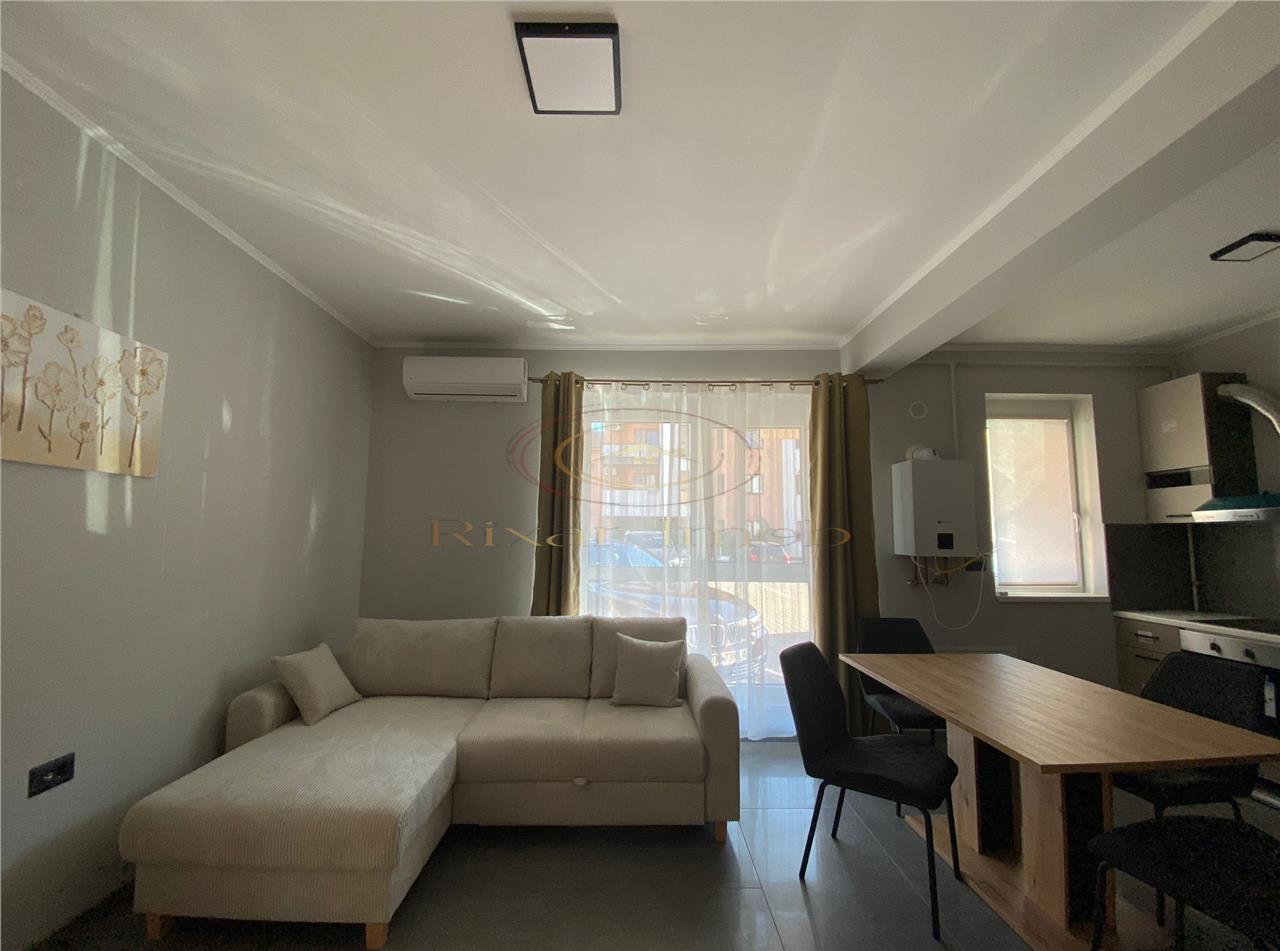 Apartament luminos, situat la parterul unui bloc finalizat în 2025. Dispune de două camere (living cu bucătărie open-space și dormitor), baie cu duș walk-in și hol cu spațiu de depozitare. Apartamentul nu dispune de balcon, dar este eficient compartimentat.
