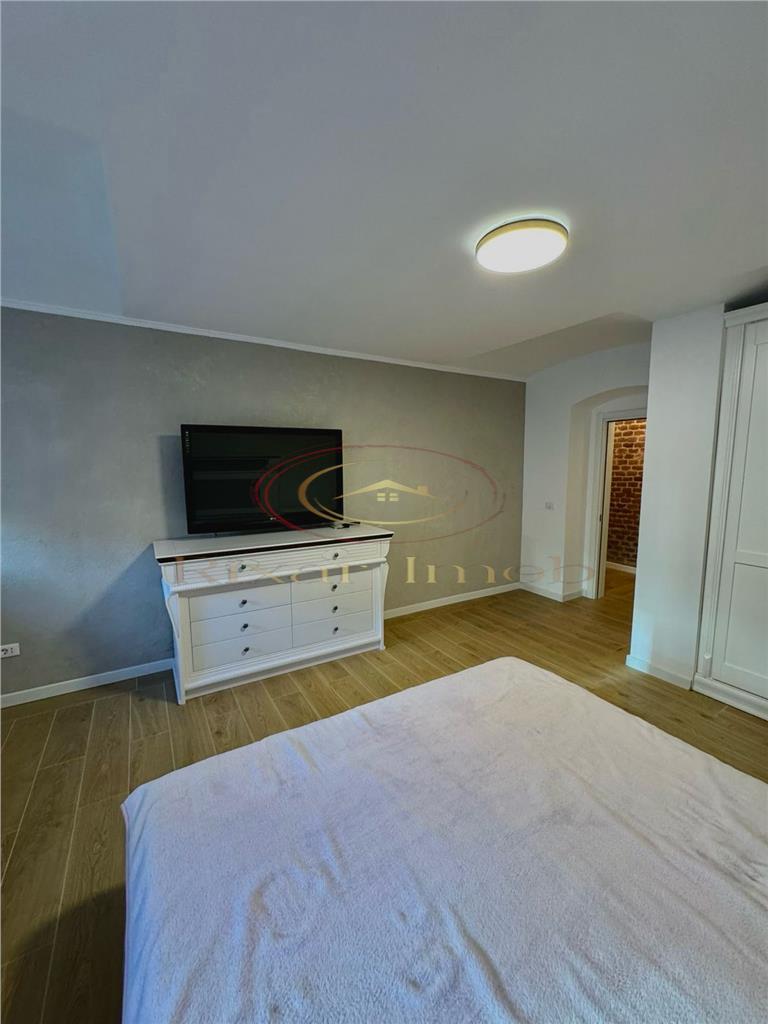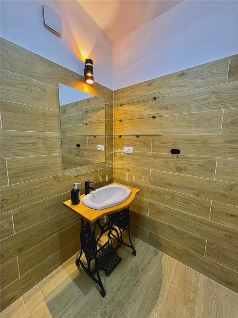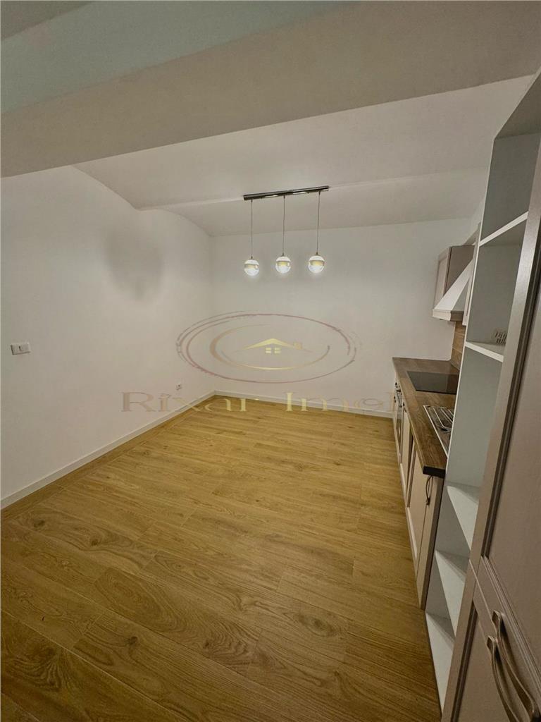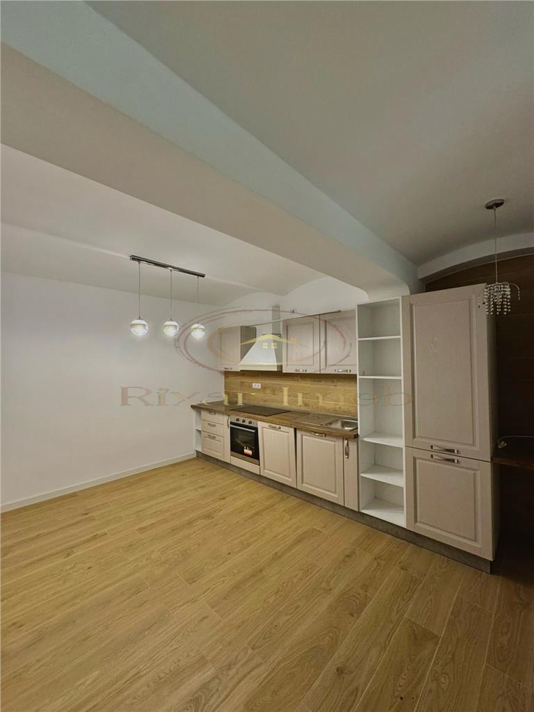 Compartimentarea include living, bucătărie complet echipată, dormitor spațios, baie, hol și un spațiu de depozitare separat inclus în preț. Holul păstrează bolta originală din cărămidă aparentă, un detaliu care conferă apartamentului un aspect aparte. Finisajele sunt moderne peste tot: pardoseli gresie efect lemn, zugrăveli proaspete, instalații electrice și sanitare refăcute complet. Baia este finisată cu gresie efect lemn și dotată cu toaletă suspendată și bideu.